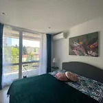 Este apartamento está diseñado para proporcionar a los huéspedes comodidad y relajación, y dispone de minibar. Para no cocinar, los restaurantes el Bar Kiko Beach y el Bistro Alexander están a 11 minutos a pie. Los huéspedes también pueden tomar un autobús en la estación de autobuses DSK Bank, situada a 850 metros, para explorar Nesebar. El apartamento cuenta con acceso a parque acuático, terraza y jardín, así como una terraza con vistas a la piscina. Las actividades deportivas destacadas en la zona incluyen windsurf, submarinismo y piragüismo.